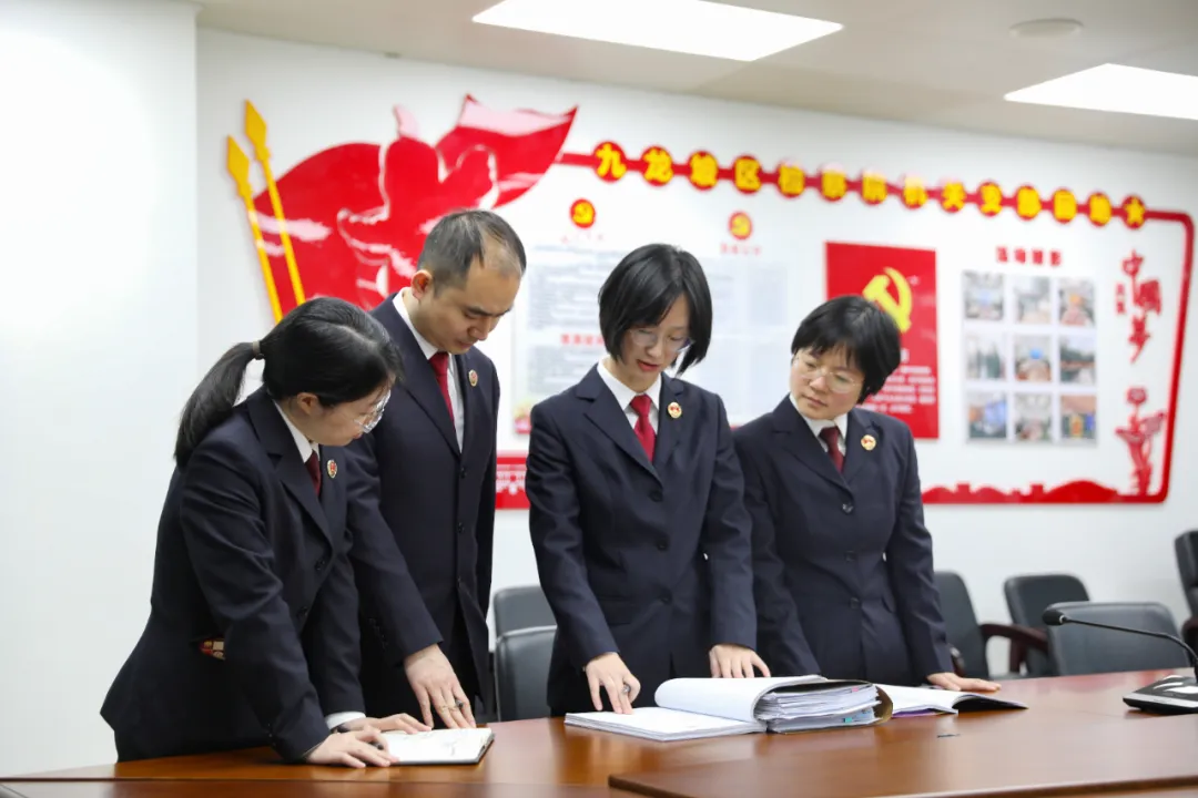 重庆市九龙坡区检察院检察官围绕如何制作支持起诉意见书展开讨论,查阅法条以及文献。