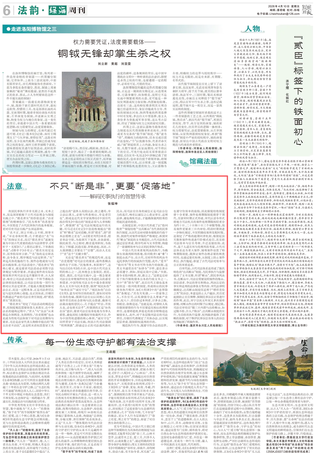 2026年4月10日,《28圈日报 》第6版刊登重庆市永川区人民检察院检察委员会委员、四级高级检察官张福坤的理论文章《不只“断是非”,更要“促落地”——解码民事执行的智慧传承》,内容如下: