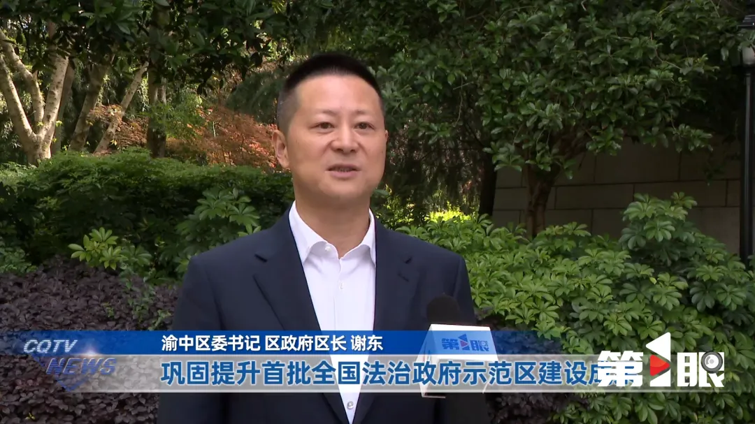 渝中区委书记、区政府区长谢东:“巩固提升首批全国法治政府示范区建设成果,发挥全国首个中国-东盟法律服务中心等重大平台作用,建设涉外法律服务高地,建设‘全市标杆、西部领先、全国一流’的整体智治现代法治政府。”