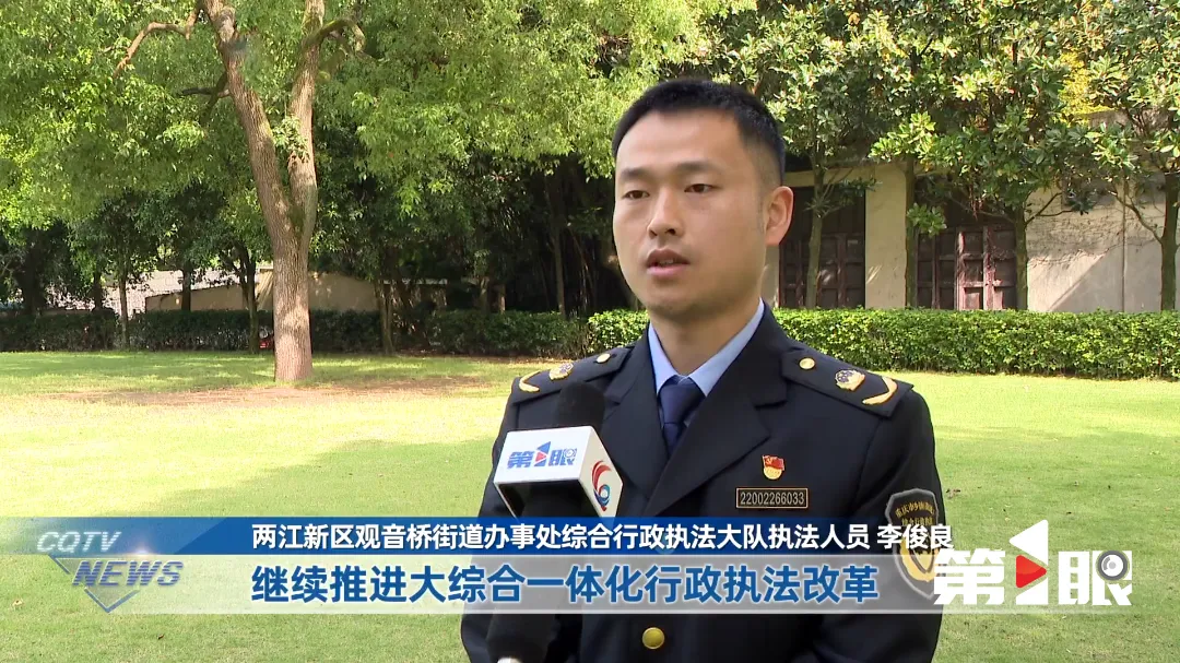 两江新区观音桥街道办事处综合行政执法大队执法人员李俊良:“继续推进大综合一体化行政执法改革,用高效规范的执法服务,护航企业合规经营,进一步提升市场主体满意度。”