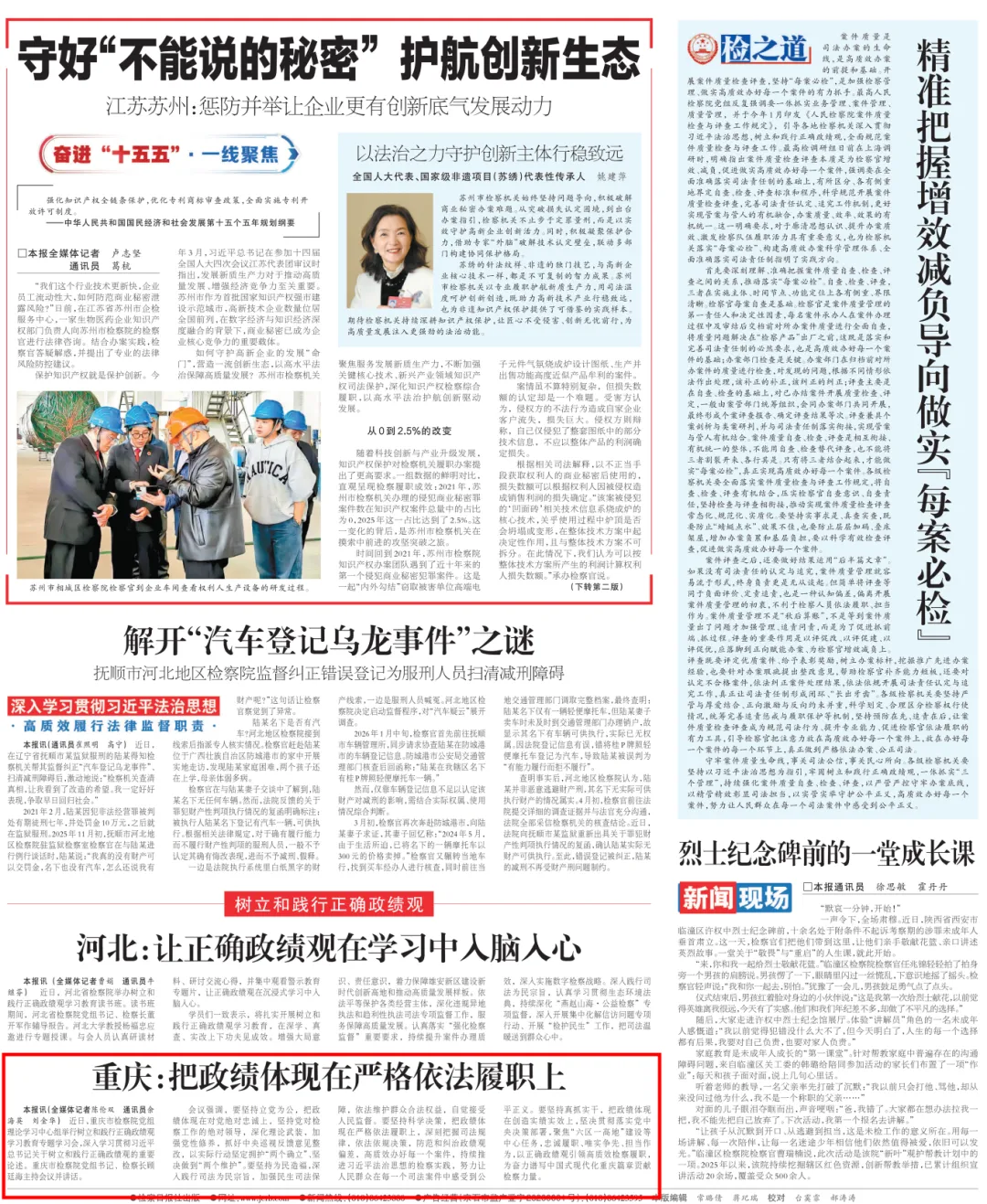 2026年4月20日,《28圈日报 》头版刊登《重庆:把政绩体现在严格依法履职上》一文,内容如下: