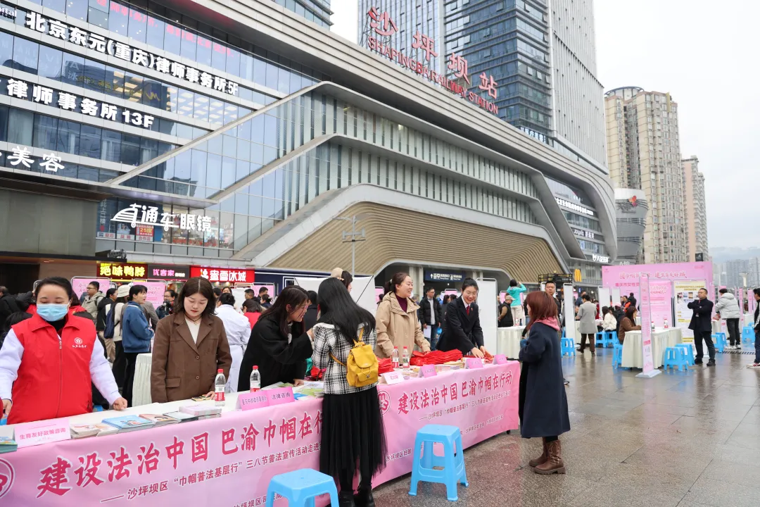 在第116个“三八”妇女节来临之际,为提高广大妇女群众的法律素养和维权能力,3月3日,沙坪坝区检察院携手区妇联、区法院、区司法局,在沙坪坝站前广场摆上“法治大集”,开展“建设法治中国·巴渝巾帼在行动”三八节普法宣传活动。