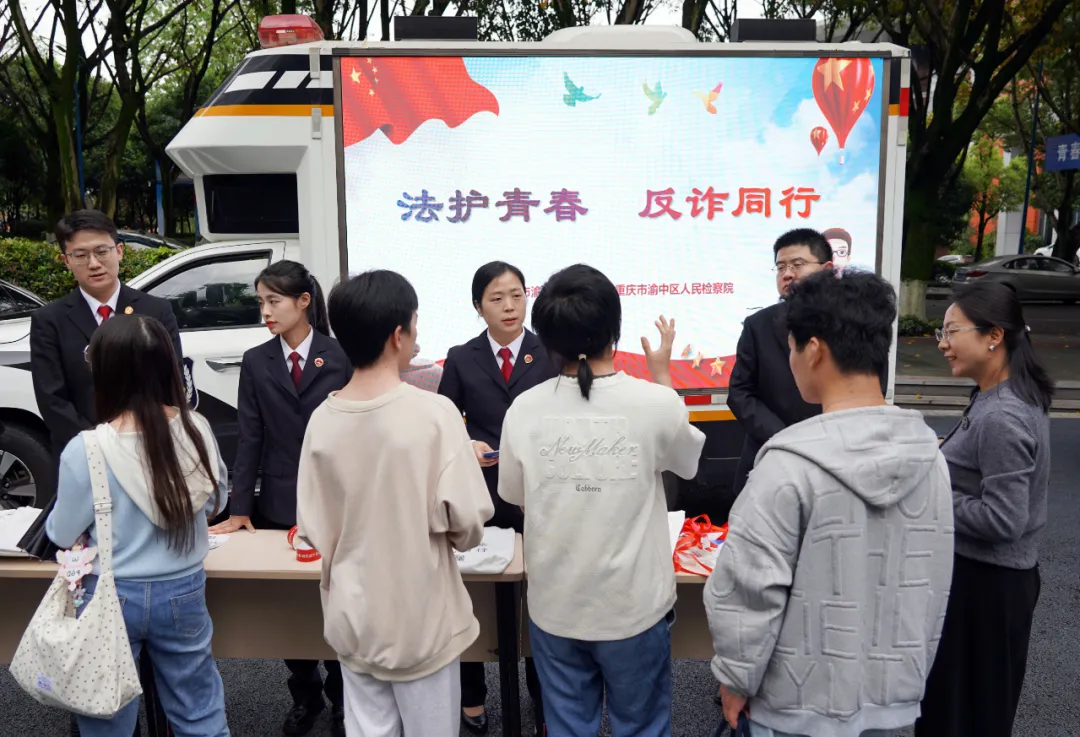 4月14日,渝中区检察院联合区法院走进西南政法大学,开展“法护青春 反诈同行”庭审进校园活动。本次活动对一起电信网络诈骗案件依法公开开庭审理,同时邀请人大代表与西政师生现场观摩。将庄严肃穆的法庭搬进校园,为全体师生带来一堂沉浸式、零距离的反诈法治教育课。