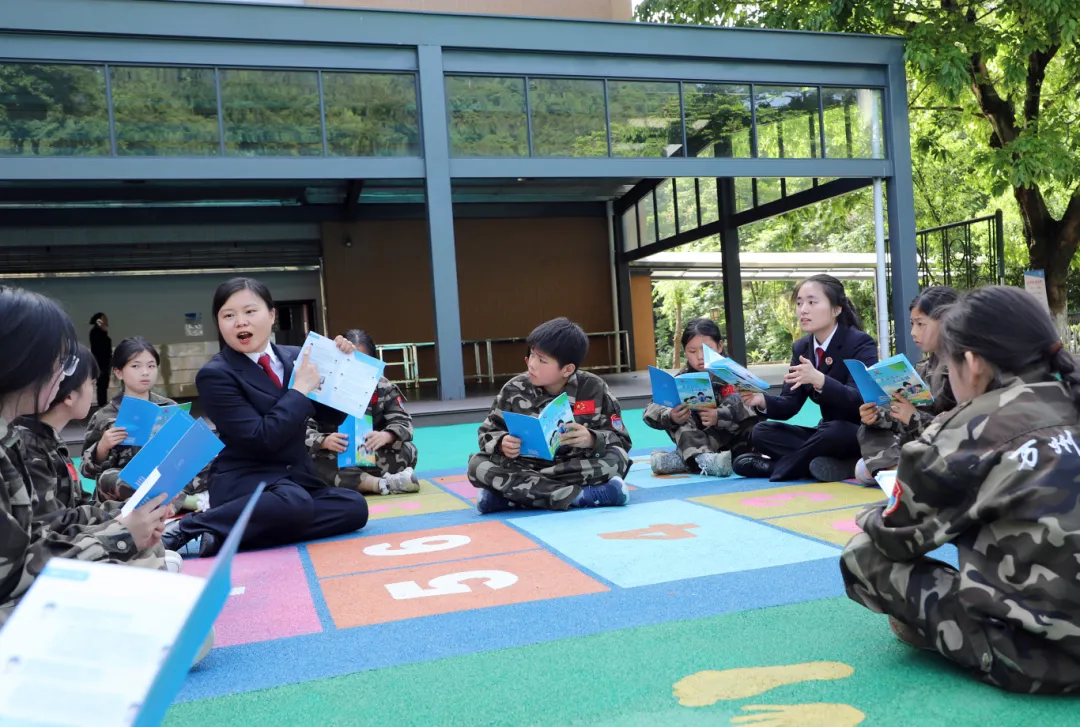 在“青少年法治教育基地”,万州区检察院渝检护“未”团队开展“同读一本书”活动。检察官罗欣和助理胡曦丹为同学们分发法治绘本,通过角色扮演、互动问答等方式,将枯燥法条融入趣味阅读,让孩子们在书香中学会学法、守法。