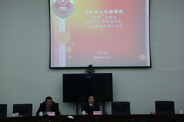 12月21日,巫山县检察院党组成员、副检察长、巫山第二中学法治副校长骆芳莉到巫山第二中学为该校100多名师生上了一堂生动有趣的法治课。参加法治课的师生纷纷表示,这是一堂贴近日常生活,提升学生自我防范意识的法治课,大家都收获满满。