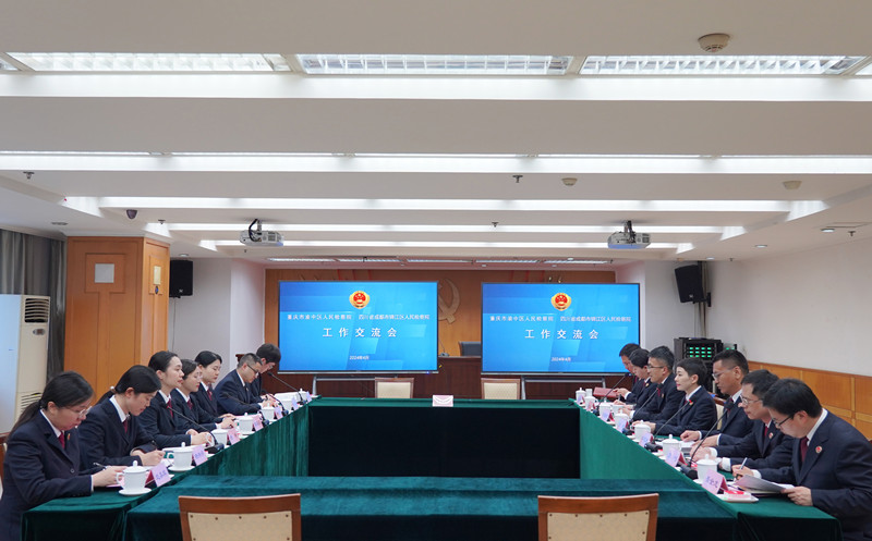 重庆市渝中区检察院党组副书记、副检察长彭静,党组成员、副检察长朱志荣,四川省成都市锦江区检察院党组副书记、副检察长李薇薇及两地检察院相关部室负责人参加会议。