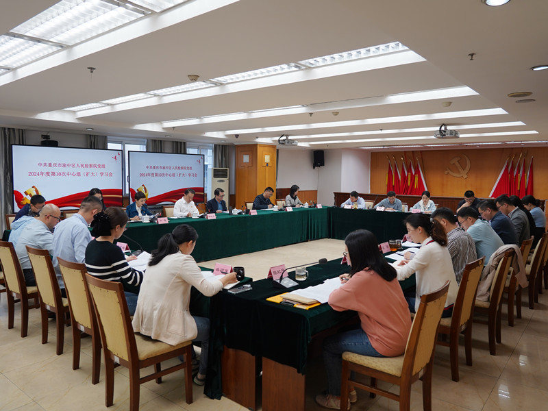 近日,渝中区人民检察院召开2024年度第10次党组理论学习中心组(扩大)会议,会议深入学习习近平总书记近期重要讲话精神,学习领会习近平总书记关于宣传思想文化工作、意识形态工作的重要论述。